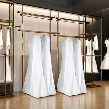 ผ้าคลุมชุดแต่งงานกันฝุ่นสำหรับการจัดเก็บกระเป๋าเสื้อผ้าไม่ทอผ้าออกซ์ฟอร์ดพับได้โลโก้ตามสั่ง