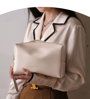 Özel Logo yeni tasarımcı lüks su geçirmez Pu deri makyaj kılıfı kadınlar markalı kolu tuvalet seyahat makyaj kozmetik çantası